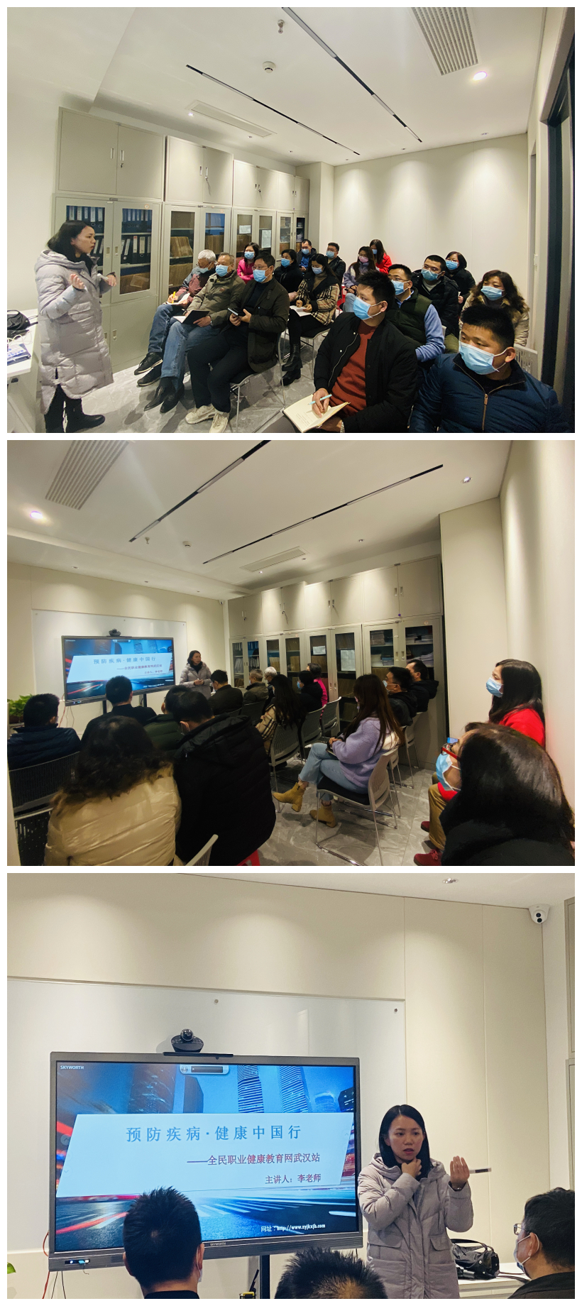 為提高員工健康安全知識(shí),重視職業(yè)病預(yù)防及心理調(diào)節(jié),武漢興盛洋船舶管理有限公司于2020年11月23日開展了以<預(yù)防疾病,健康中國(guó)行>為主題的學(xué)習(xí)會(huì),并請(qǐng)到”全民職業(yè)健康教育網(wǎng)”武漢站的李老師(原武漢市第一醫(yī)院醫(yī)師)來(lái)現(xiàn)場(chǎng)為大家做講解。講座內(nèi)容圍繞“突發(fā)事件應(yīng)急處理”、“新冠疫情防護(hù)知識(shí)講解”、“常見職業(yè)病的預(yù)防及改善亞健康”三個(gè)方面展開。李老師為大家講解演示了如何在突發(fā)事件中運(yùn)用正確的救助手法,為大家普及新冠疫情防護(hù)措施以及日常職業(yè)疾病防護(hù)的知識(shí),通過(guò)圖文并茂的課件、生動(dòng)典型的案例和通俗易懂的語(yǔ)言,多角度的在未病先防、健康養(yǎng)生、合理膳食、加強(qiáng)鍛煉等多方面進(jìn)行了詳細(xì)講解,現(xiàn)場(chǎng)為員工面對(duì)面答疑解惑。